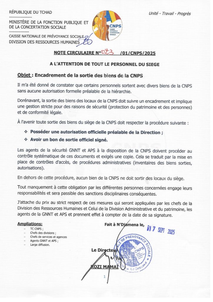 NOTE CIRCULAIRE N°0077/01/CNPS/2025
